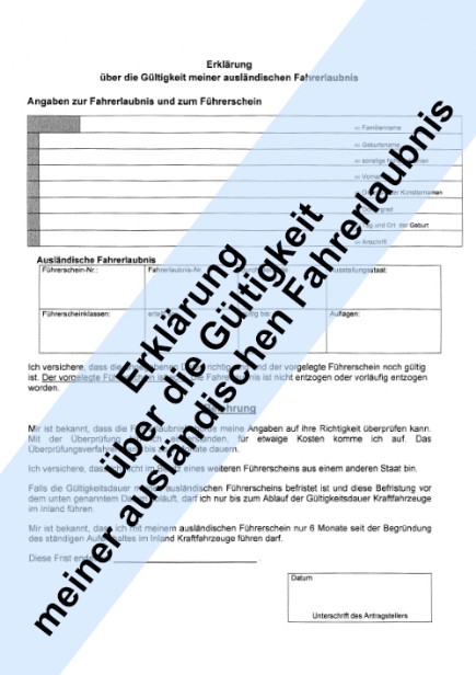 Erklärung über die Gültigkeit meiner ausländischen Fahrerlaubnis